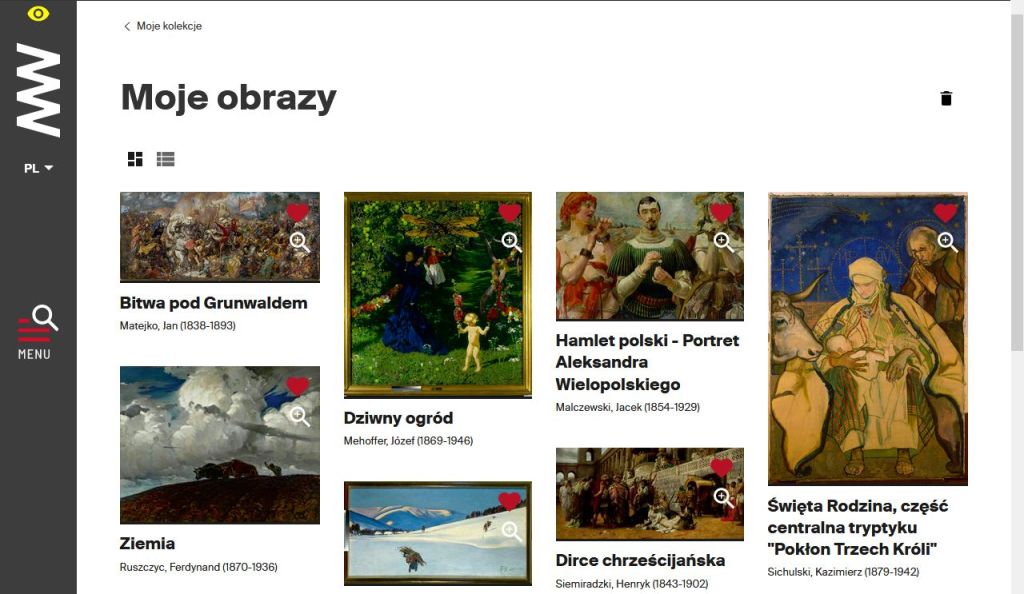 Podobnie jak w przypadku Polony, w portalu Muzeum Narodowego znajdziemy kolekcje tematyczne – zbiory obiektów, które łączy wspólny motyw przewodni (między innymi, Jan Matejko, Stanisław Wyspiański, Jacek Malczewski, Józef Mehoffer).
